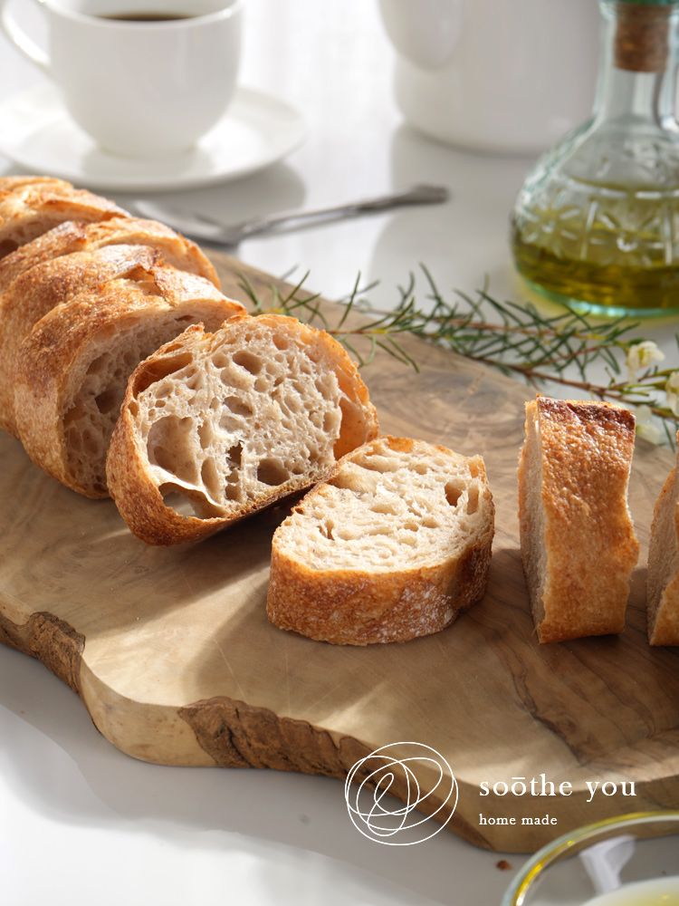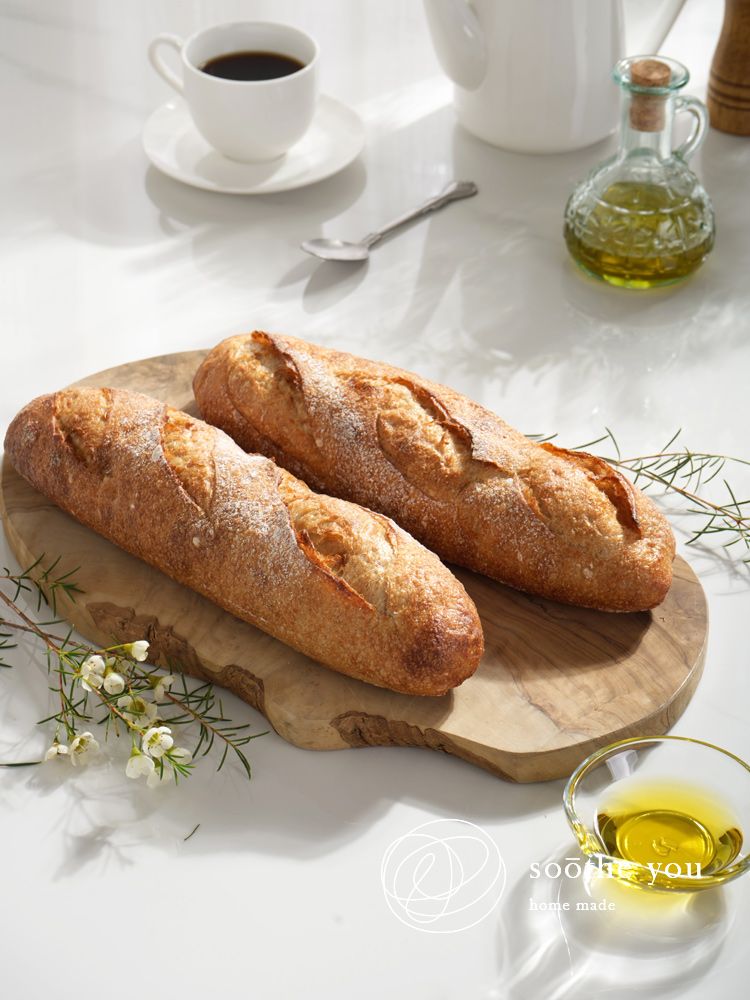 手工製作,耗時多天長時間低溫發酵製成,含水量高屬於硬式法棍,麥香濃厚,麵體Q彈有嚼勁,咀嚼中有多層次堅果麥香甜味回甘,可搭配初榨橄欖油、巴薩米克醋。